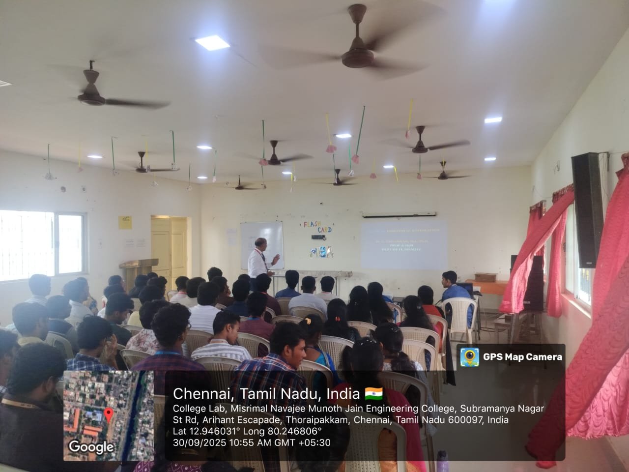 Guest Lecture was organized by CSBS department on 30 th September, on the topic “AI/ML forIndustrial Automation” delivered by Dr.N.JaiSankar,HOD/IT